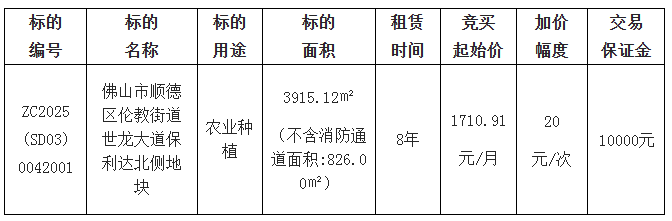 1.项目名称:佛山市顺德区伦教街道世龙大道保利达北侧地块公开招租项目(四次)