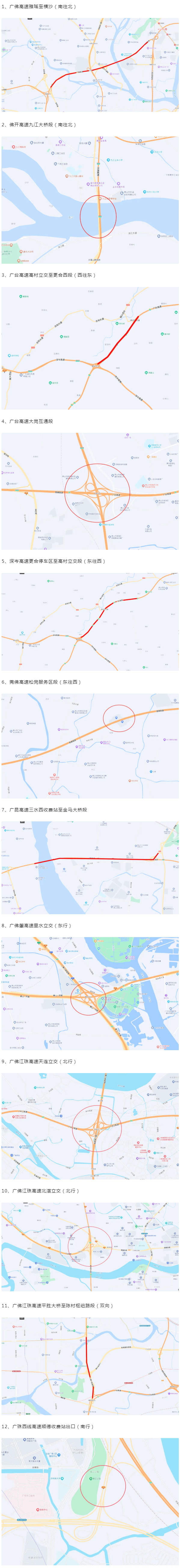 佛山市公安局交管部门预计,佛山辖区以下高速公路,将呈现明显的出返程缓行特征: