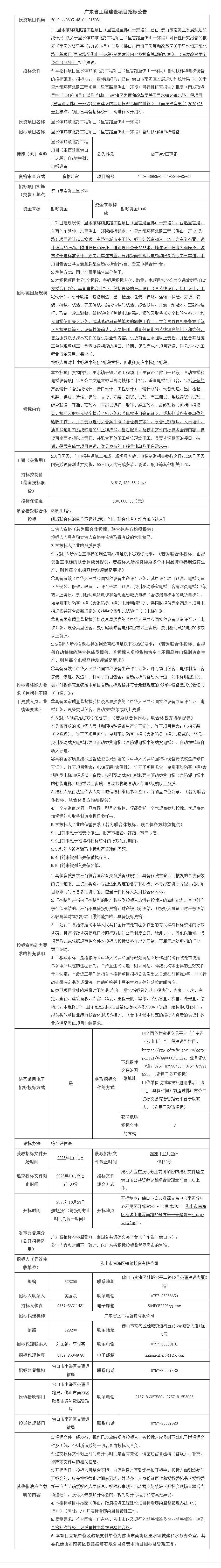 南海里水镇环镇北路工程项目(里官路至佛山一环段)自动扶梯和电梯设备招标公告