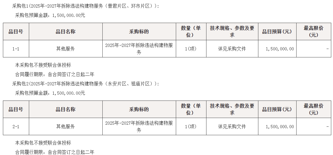 2025年-2027年拆除违法构建物服务竞争性磋商公告