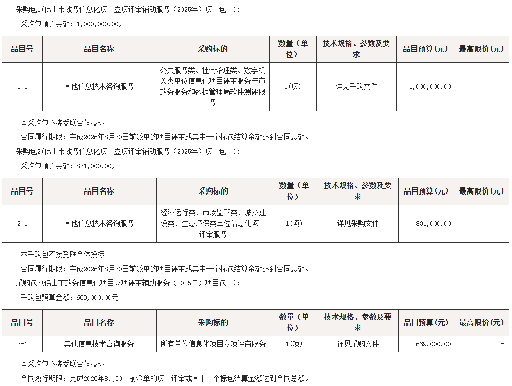 佛山市政务信息化项目立项评审辅助服务(2025年)项目招标公告