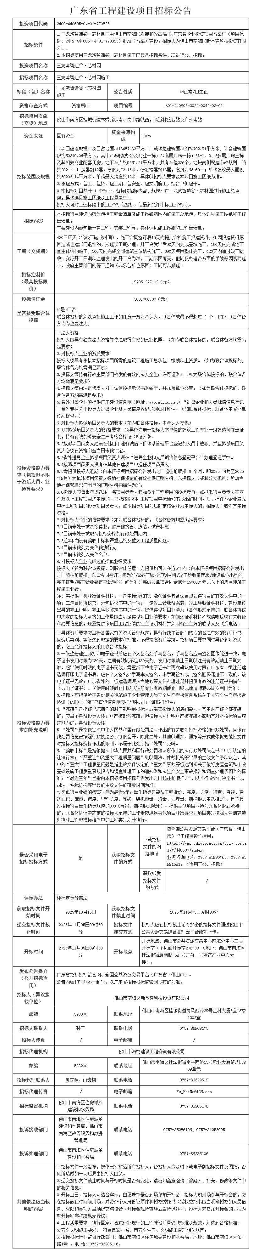 三龙湾芯显智汇园已由佛山市南海区发展和改革局以广东省企业投资项目备案证(项目代码:2404-440605-04-01-858400)备案建设。项目已具备招标条件...[阅读全文]