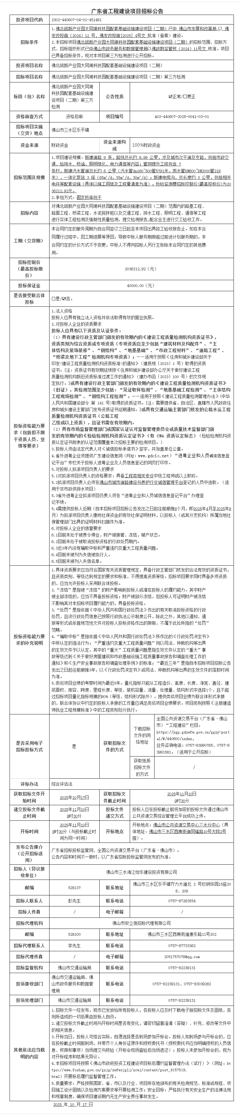 > 佛北战新产业园大同湖科技园配套基础设施建设项目(二期)第三方检测招标公告