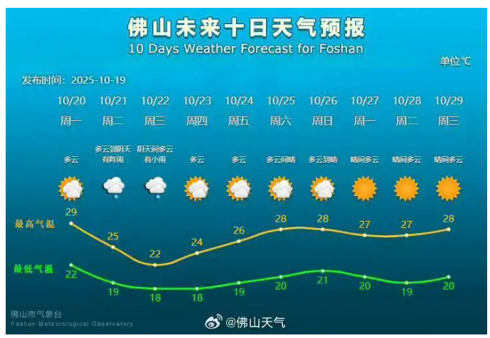 据广东天气消息,受台风“风神”和中等强度冷空气共同影响,20-22日,我省海陆风力加大,气温自北向南逐渐下降,过程降温幅度约6~10℃。据佛山市气象台消息,预计佛山市平均风力4级,阵风7到8级,气温逐日下降,过程日平均气温下降7到9℃,过程最低气温18°C左右,出现在22日早晨,体感清凉。冷空气影响期间,气温持续下降,需注意防风和适时增添衣物。