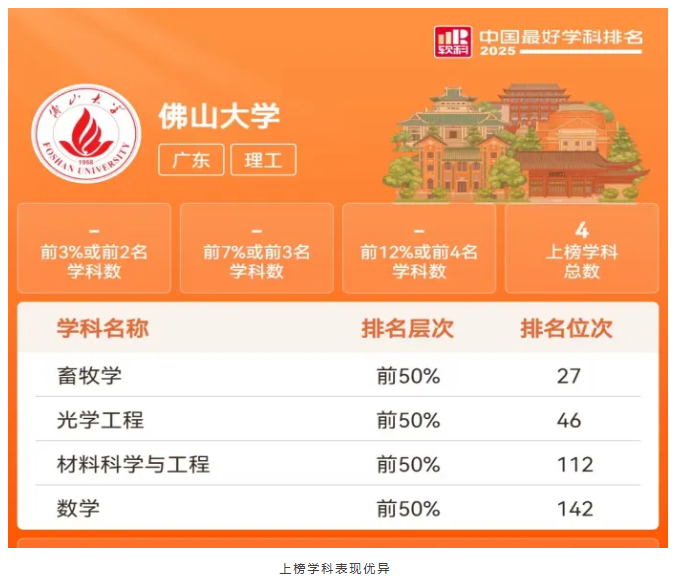 在今年的软科“2025中国最好学科排名”中,我校畜牧学学科再次上榜,位列全国排名第27位;光学工程学科,位列全国排名第46位;材料科学与工程学科首次上榜,位列全国排名第112位;数学学科,位列全国排名第142位。这一成绩充分体现了学校党委的战略部署和学科建设成效,彰显了学校高质量发展的新成就。