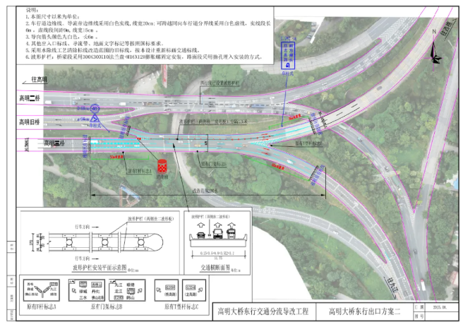 2、在出城方向高明大桥旧桥下桥位(樵高立交)增设波形护栏,减少车流交织,防范违规变道,降低事故风险。