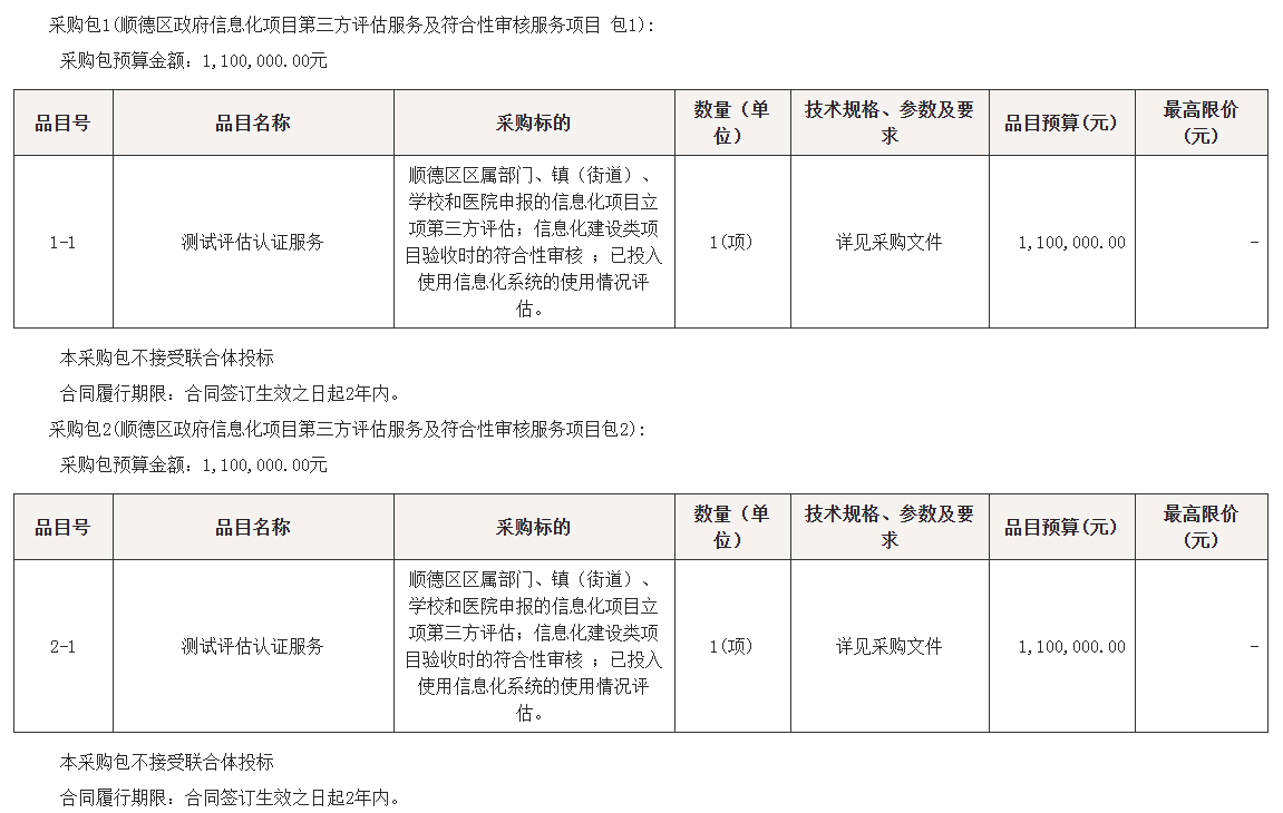 项目名称:顺德区政府信息化项目第三方评估服务及符合性审核服务项目