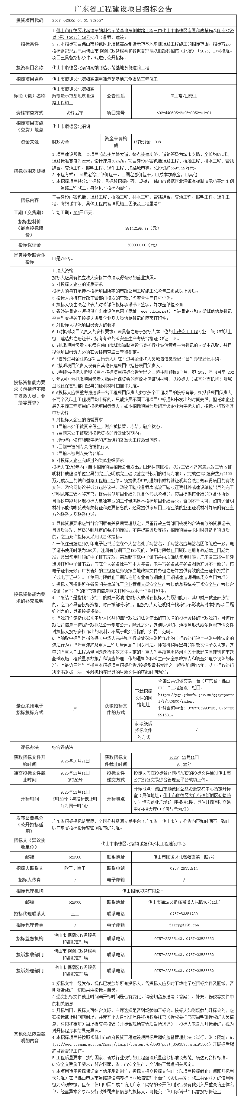 概述:佛山市顺德区北滘镇高端制造示范基地东侧道路工程已由佛山市顺德区发展和改革局以顺发改资(北滘)〔2025〕18号批准(备案)建设......