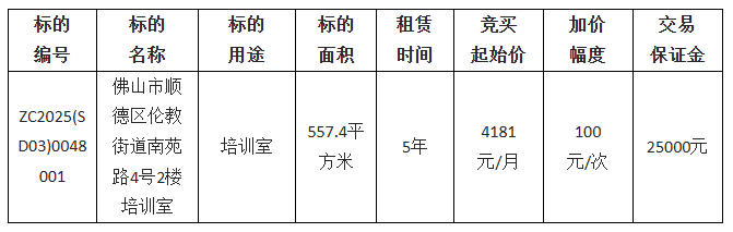 1.项目名称:佛山市顺德区伦教街道南苑路4号2楼培训室公开招租项目