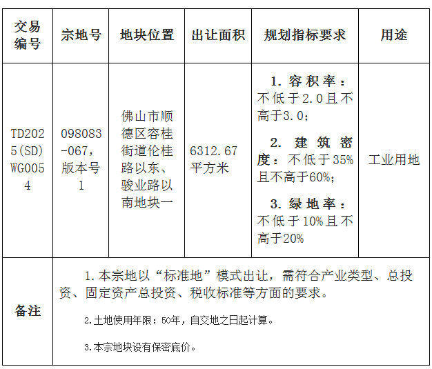 五、有意参与竞买者可于2025年10月22日后登录网上交易系统下载TD2025(SD)WG0054地块的《佛山市顺德区国有建设用地使用权网上挂牌出让文件》。