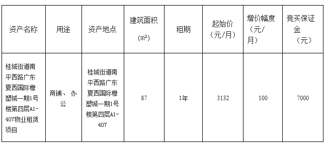 南海桂城街道南平西路广东夏西国际橡塑城一期1号楼第四层A1-407物业租赁项目