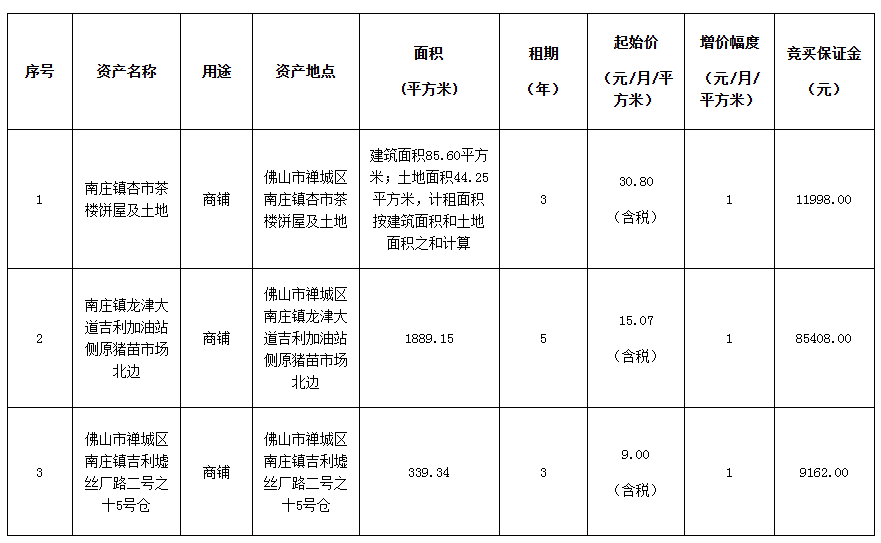 佛山市晋茂润沣物业经营有限公司公有物业竞租(2025年第4期)
