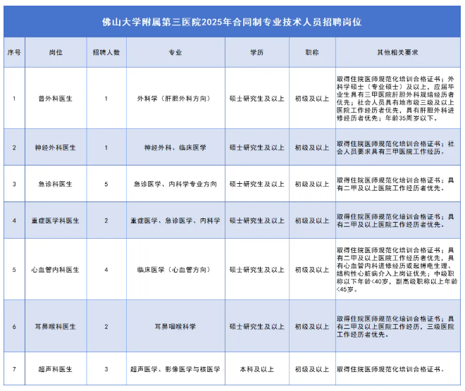 > 佛大附三院2025年合同制专业技术人员招聘公告