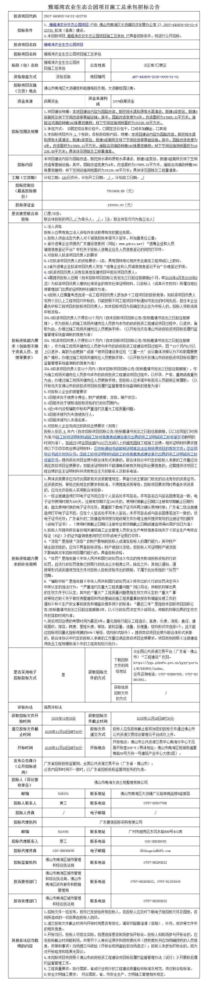 南海大沥雅瑶湾农业生态公园项目施工总承包招标公告