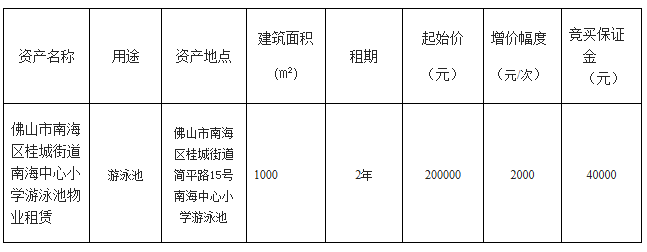 > 佛山市南海区桂城街道南海中心小学游泳池物业租赁