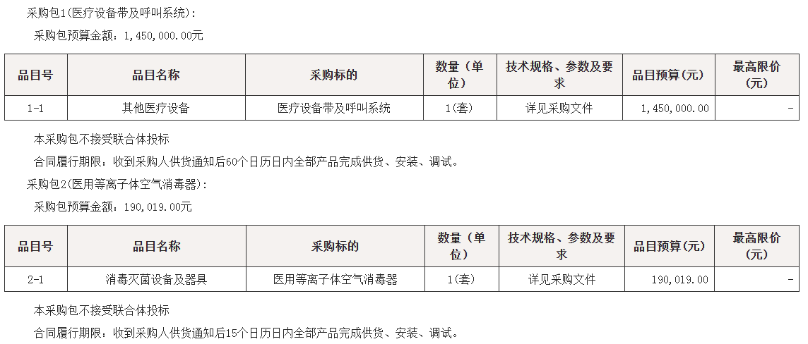 项目名称:医疗设备带及呼叫系统、医用等离子体空气消毒器采购项目