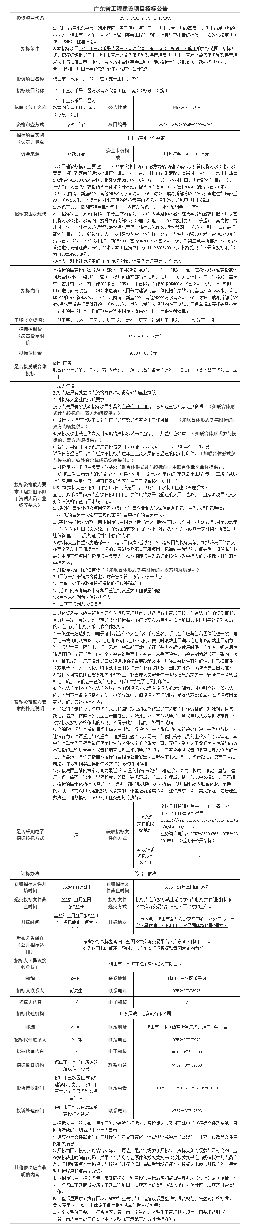 佛山市三水乐平片区污水管网完善工程(一期)(标段一)施工招标公告