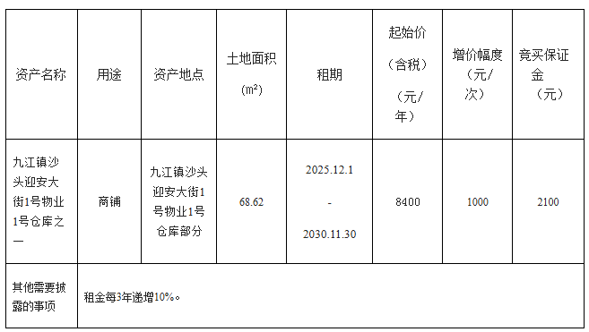 3.招/出租人:佛山市南海区九江镇镇有资产管理有限公司