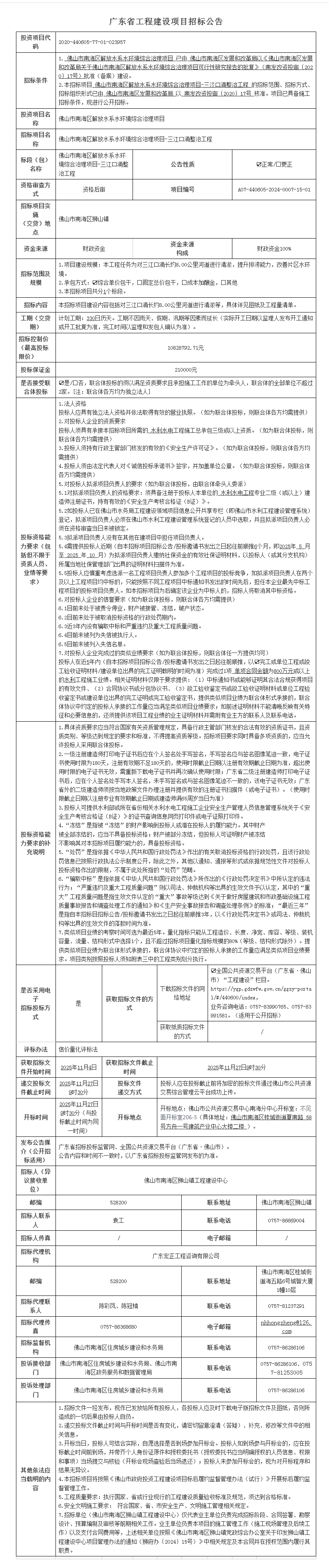 佛山市南海区解放水系水环境综合治理项目-三江口涌整治工程招标公告
