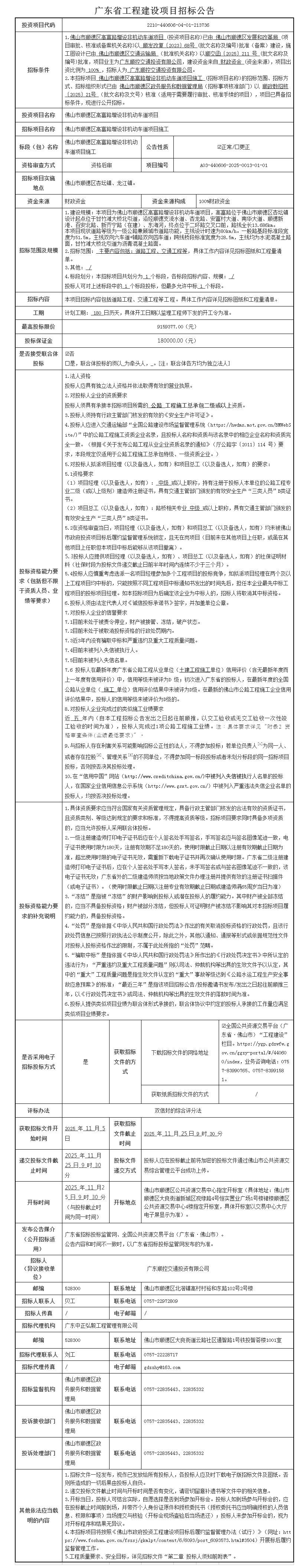 时间:2025-11-06 人气:64 来源:佛山市公共资源交易信息化综合平台 作者: