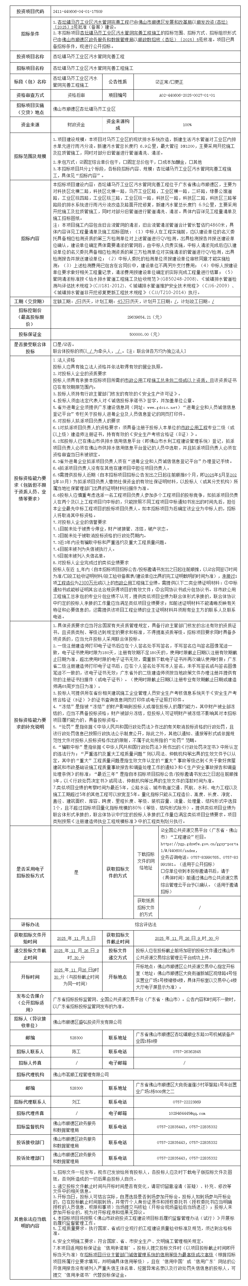 时间:2025-11-06 人气:113 来源:佛山市公共资源交易信息化综合平台 作者: