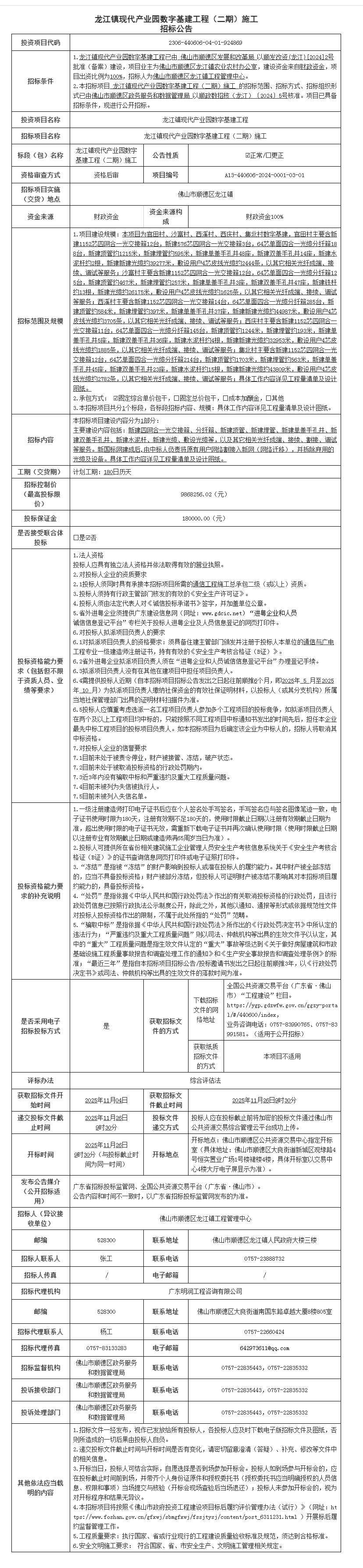 顺德龙江镇现代产业园数字基建工程(二期)施工招标公告