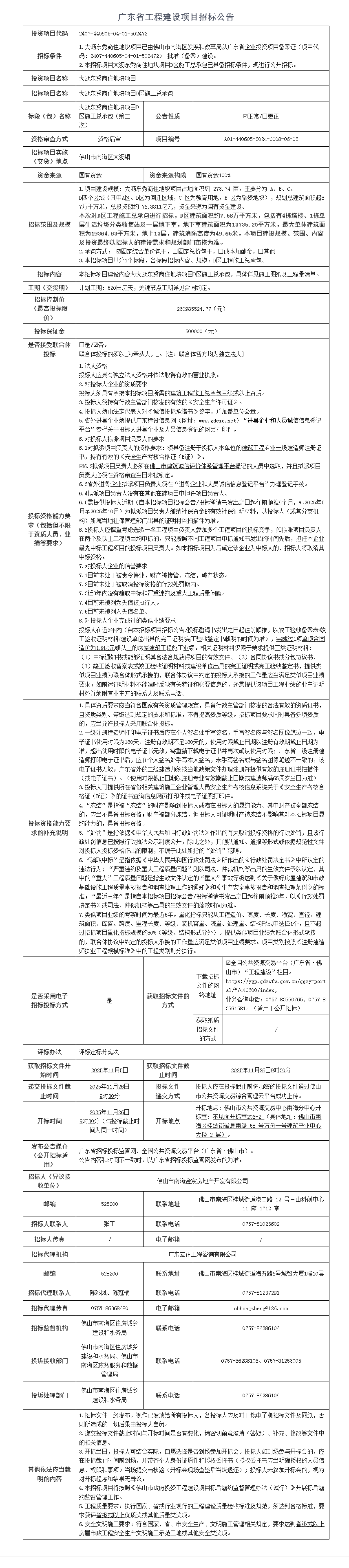 南海大沥东秀商住地块项目D区施工总承包招标公告