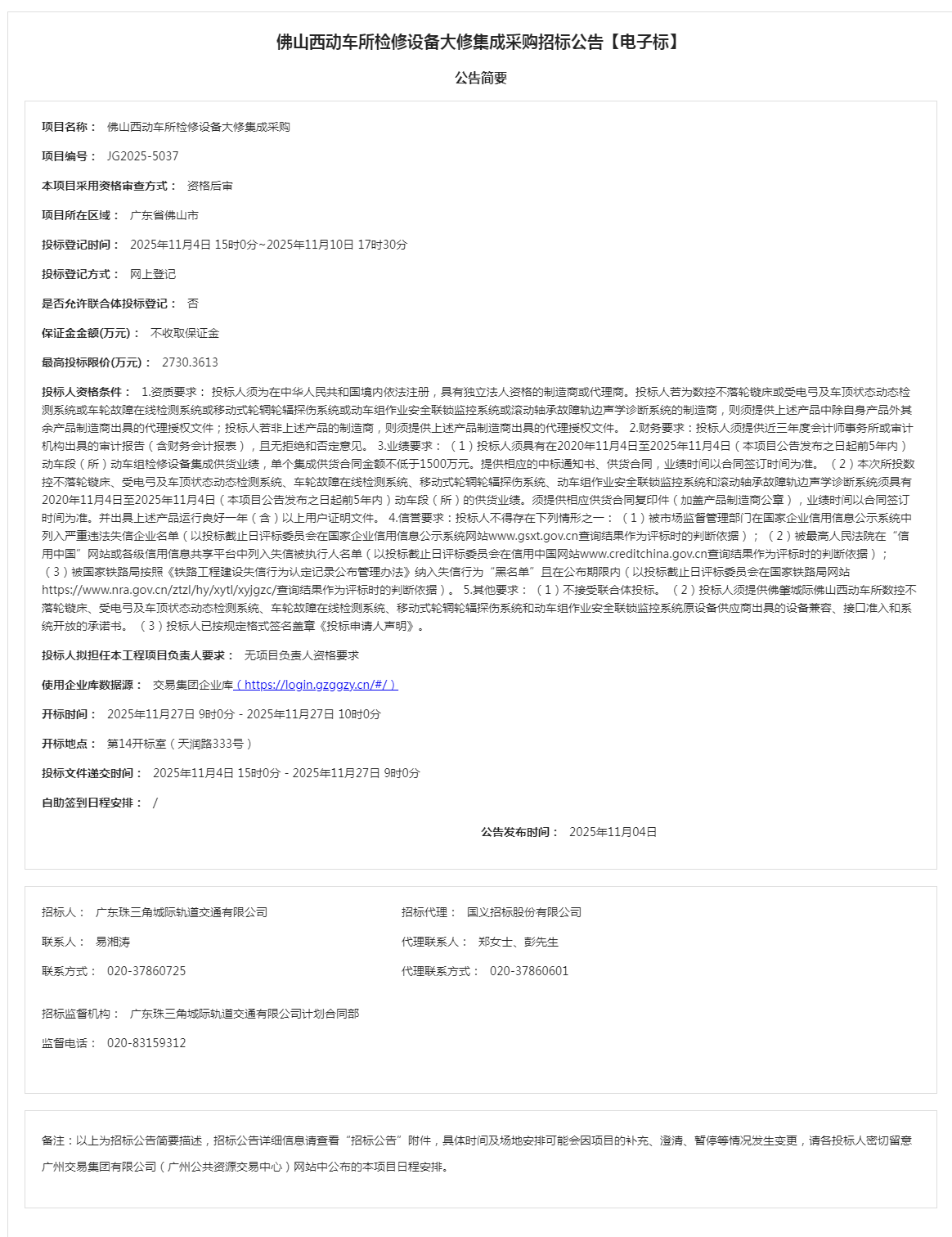 时间:2025-11-07 人气:93 来源:佛山市公共资源交易信息化综合平台 作者: