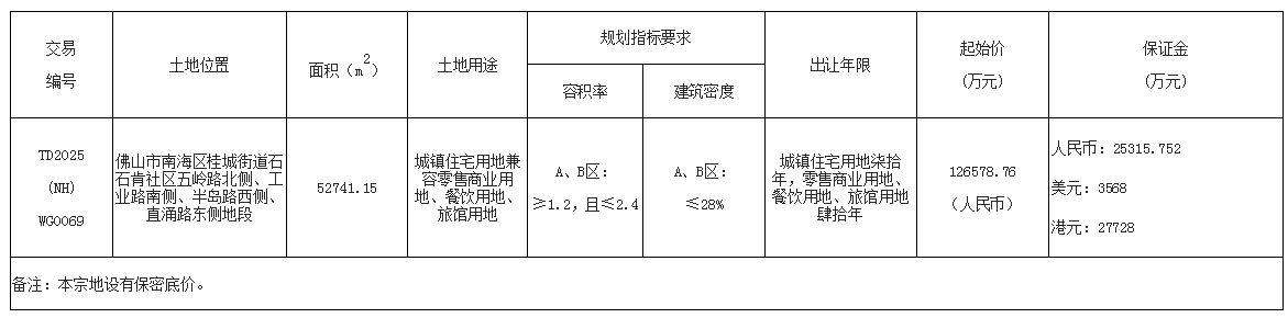 佛山市南海区国有建设用地使用权网上挂牌出让公告