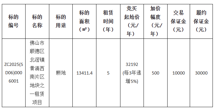 佛山市顺德区北滘镇土地发展中心采用网上竞价方式出租位于佛山市顺德区北滘镇黄涌西南片区的佛山市顺德区北滘镇黄涌西南片区地块之一租赁项目的使用权,欢迎符合资格的竞买人参与竞价。