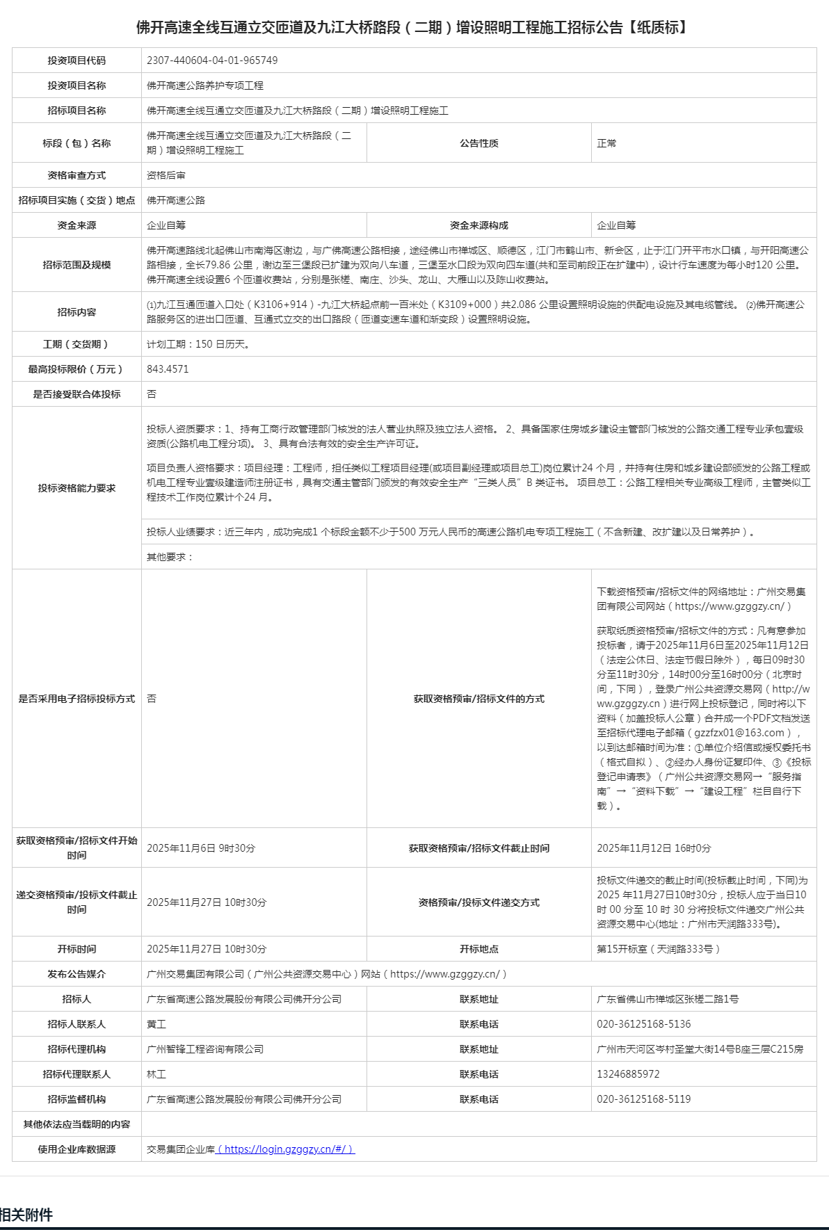 佛开高速公路养护专项工程_佛开高速全线互通立交匝道及九江大桥路段(二期)增设照明工程施工招标公告