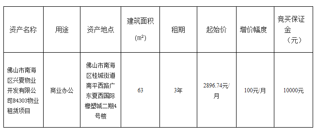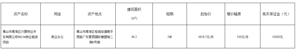 > 佛山市南海区兴夏物业开发有限公司B623A物业租赁项目