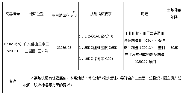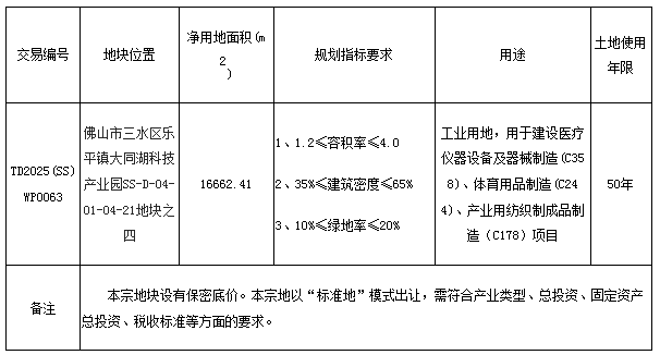 五、有意参与竞买者可于2025年11月7日后登录网上交易系统下载TD2025(SS)WP0063地块的《佛山市三水区国有建设用地使用权网上拍卖出让文件》。