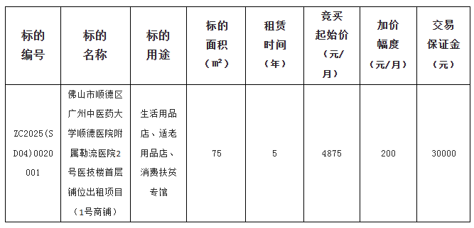 1.项目名称:佛山市顺德区广州中医药大学顺德医院附属勒流医院2号医技楼首层铺位出租项目(1号商铺)
