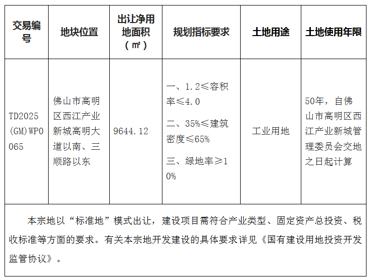 五、有意参与竞买者可于2025年11月12日后登录网上交易系统下载该地块的《佛山市高明区国有建设用地使用权网上拍卖出让文件》。