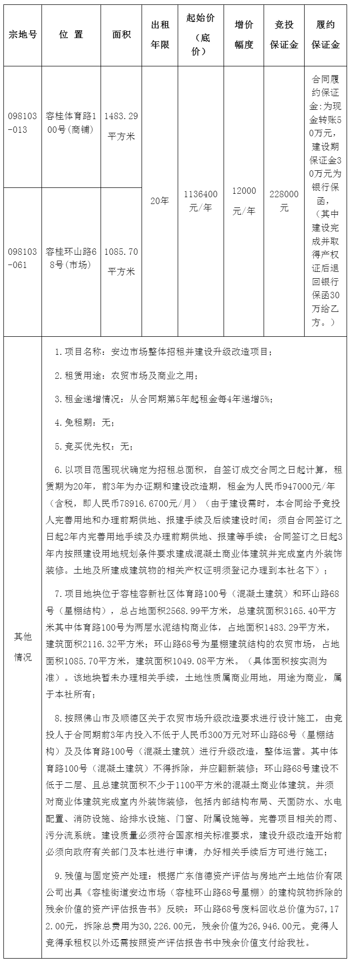 4.佛山市顺德区容桂街道办事处对本次国有建设用地使用权出租拥有最终解释权。