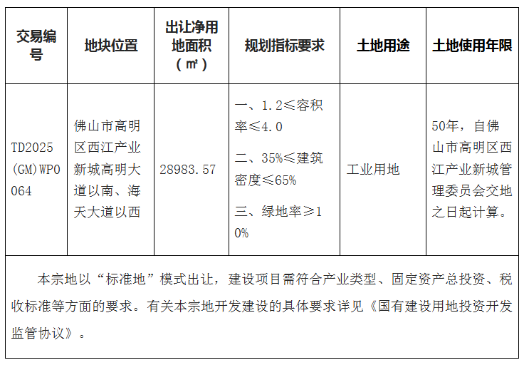 五、有意参与竞买者可于2025年11月12日后登录网上交易系统下载TD2025(SZ)WG0006地块的《佛山市国有建设用地使用权网上挂牌出让文件》。
