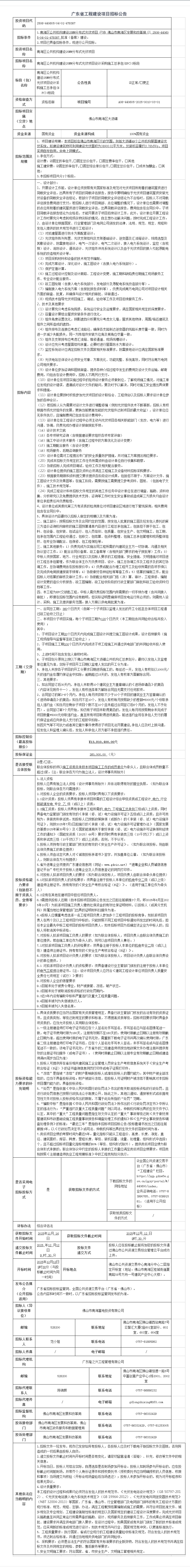 南海区公共机构建设25MW分布式光伏项目设计采购施工总承包(EPC)4标段招标公告
