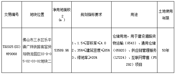 五、有意参与竞买者可于2025年11月14日后登录网上交易系统下载TD2025(SS)WP0069地块的《佛山市三水区国有建设用地使用权网上拍卖出让文件》。