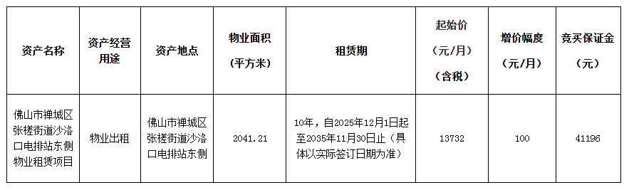 2.佛山市公共资源交易中心南海分中心通过佛山市资产交易网上交易系统及粤公平网站发布的项目信息(包括但不限于公告信息、交易文件、合同条款等)并不构成佛山市公共资源交易中心南海分中心对项目的任何交易建议。意向竞买人应不依赖于已披露的项目信息并自行对项目的相关情况进行必要的尽职调查和充分了解,对是否竞买该项目及项目成交后可能发生的费用和存在的风险自行作出充分评估,并独立承担所有风险。意向竞买人一经申请参加竞买,即视为知晓、认可项目现状,佛山市公共资源交易中心南海分中心对此不承担任何法律责任。