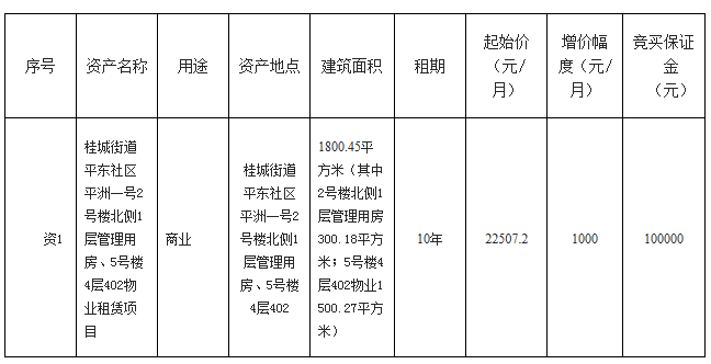 南海桂城街道平东社区平洲一号2号楼北侧1层管理用房、5号楼4层402物业租赁项目