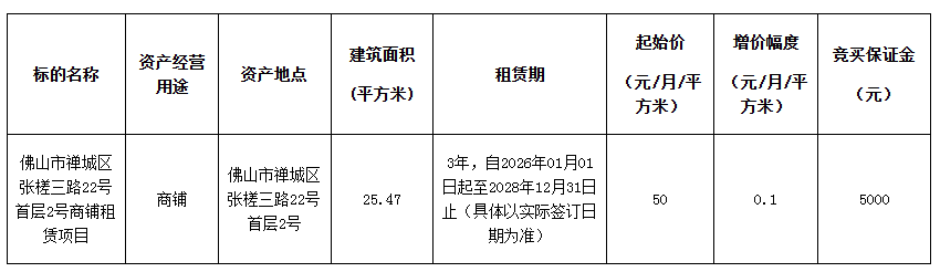 禅城祖庙街道公有物业招租(2025年-第15期)