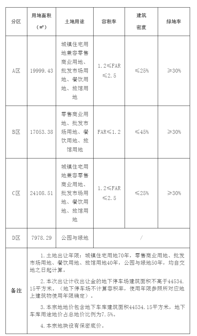 交易编号:TD2025(SD)WG0074;宗地图号:197082-505,版本号1;地块位置:佛山市顺德区陈村镇景成路以东、缤纷一路以南地块;土地面积:69139.61平方米,根据顺规条件(2025)0869号《佛山市顺德区建设用地规划条件》的分区,各分区的用地面积和规划指标详见下表: