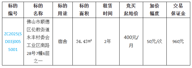 1.本项目的交易保证金为佛山市顺德区伦教街道永丰村委会工业区南路28号7幢6层之一的交易保证金为人民币大写玖佰陆拾元整(小写:¥960)。