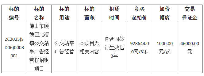 1.项目名称:佛山市顺德区北滘镇公交站亭广告经营权招租项目