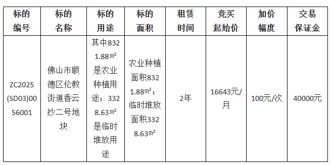 1.项目名称:佛山市顺德区伦教街道香云纱二号地块公开招租项目