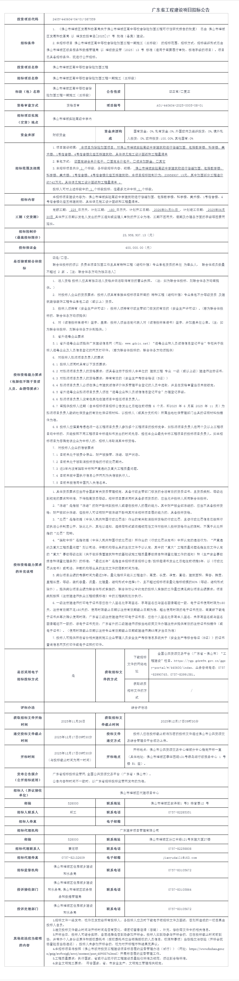 佛山顺德中心城区老旧小区改造项目-顺德区大良街道大门社区适老化服务综合体建设项目(一期)施工招标公告
