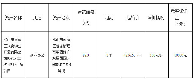 2.佛山市公共资源交易中心南海分中心通过佛山市资产交易网上交易系统及粤公平网站发布的项目信息(包括但不限于公告信息、交易文件、合同条款等)并不构成佛山市公共资源交易中心南海分中心对项目的任何交易建议。意向竞买人应不依赖于已披露的项目信息并自行对项目的相关情况进行必要的尽职调查和充分了解,对是否竞买该项目及项目成交后可能发生的费用和存在的风险自行作出充分评估,并独立承担所有风险。意向竞买人一经申请参加竞买,即视为知晓、认可项目现状,佛山市公共资源交易中心南海分中心对此不承担任何法律责任。