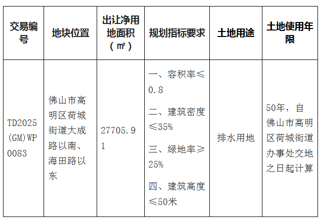 本块地其他规划建设要求按《高明区土地使用规划条件》(佛规明设函〔2025〕0126号)执行。