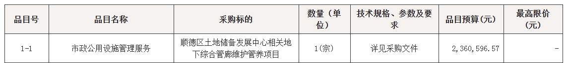采购包1(顺德区土地储备发展中心相关地下综合管廊维护管养项目):